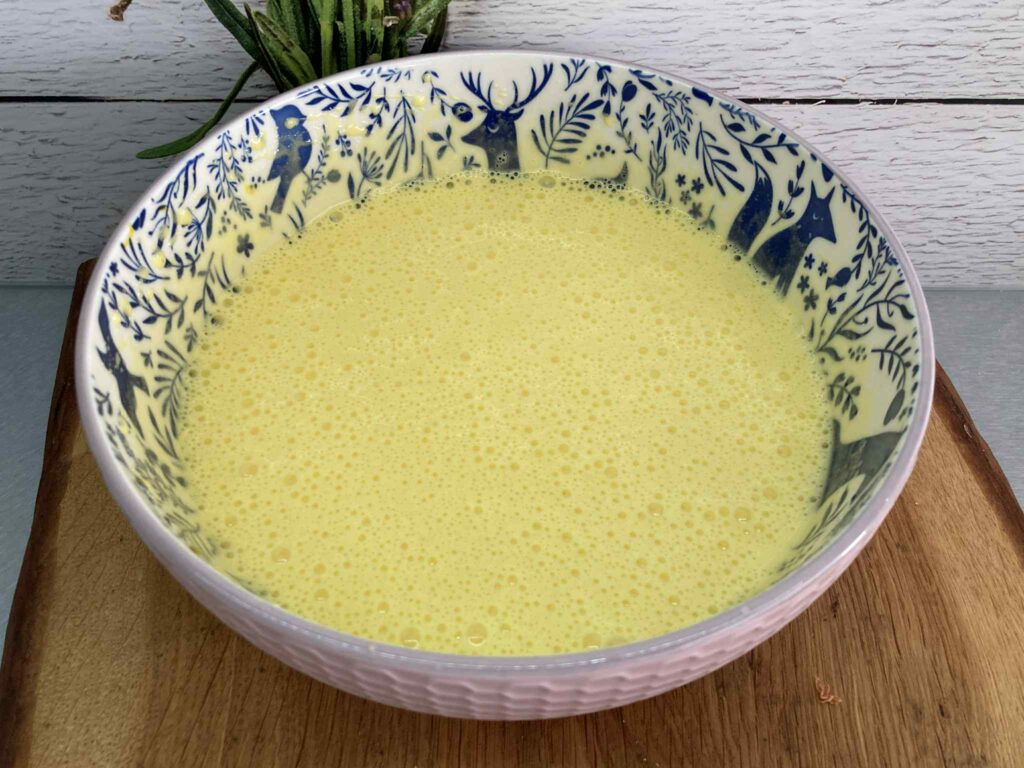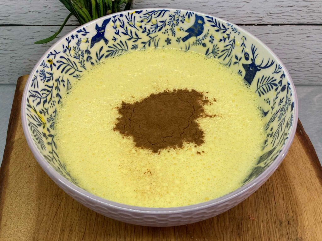W dużej misce ubij jajka z cukrem, aż masa będzie jasna i puszysta. Następnie cienką strużką wlewaj olej, cały czas mieszając. Dodaj cynamon.