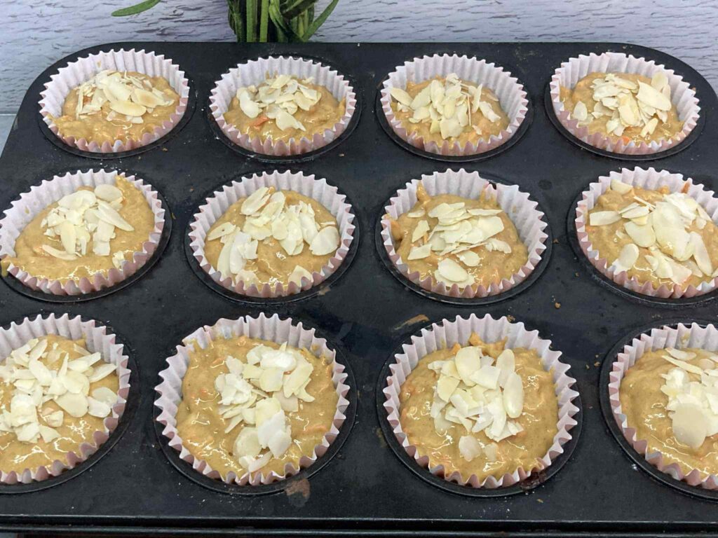 Zamiast płatków migdałów możesz użyć posiekanych orzechów włoskich lub pekan – świetnie pasują do marchewki i cynamonu.
