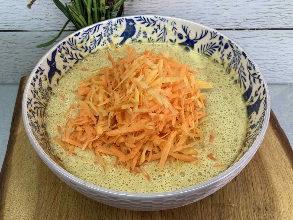 - 4 marchewki, drobno starte (ok. 2 szklanki)