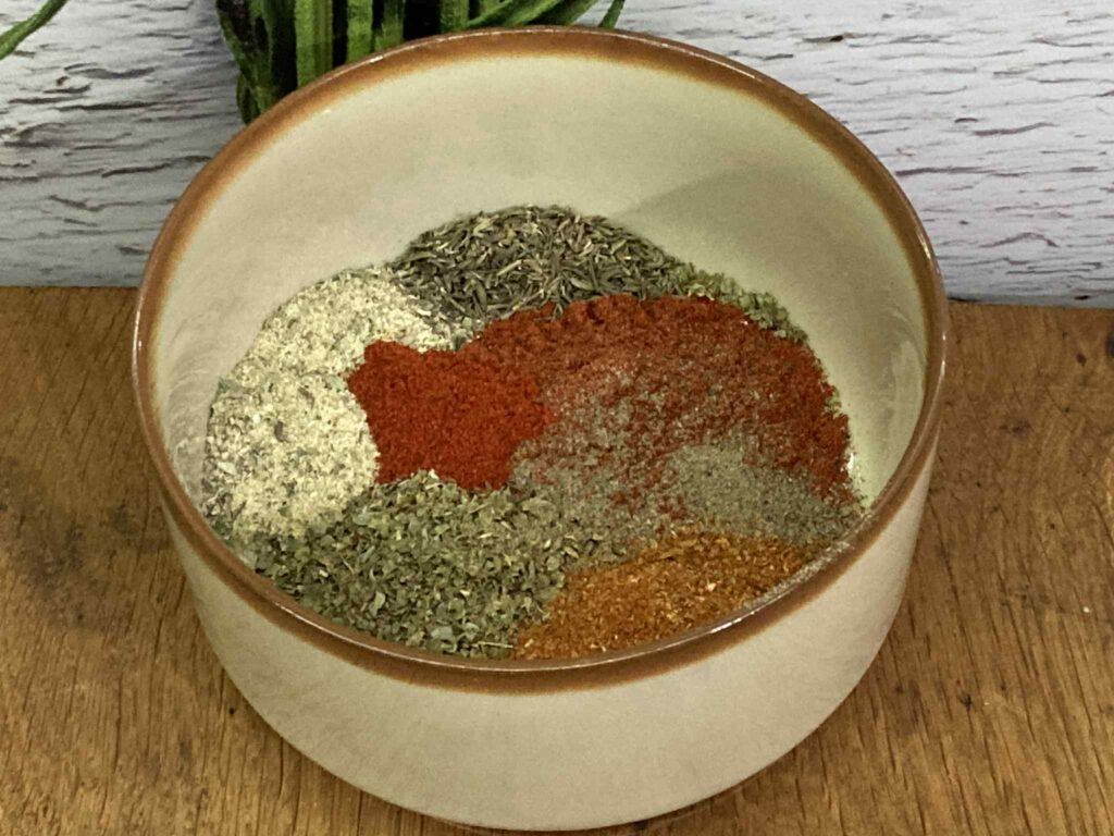 W miseczce wymieszaj wszystkie przyprawy oprócz ziela i liści laurowych. Następnie przygotowaną mieszanką natrzyj schab i odstaw na godzinę. Możesz również wszystkie przyprawy dodać razem ze schabem do mleka.