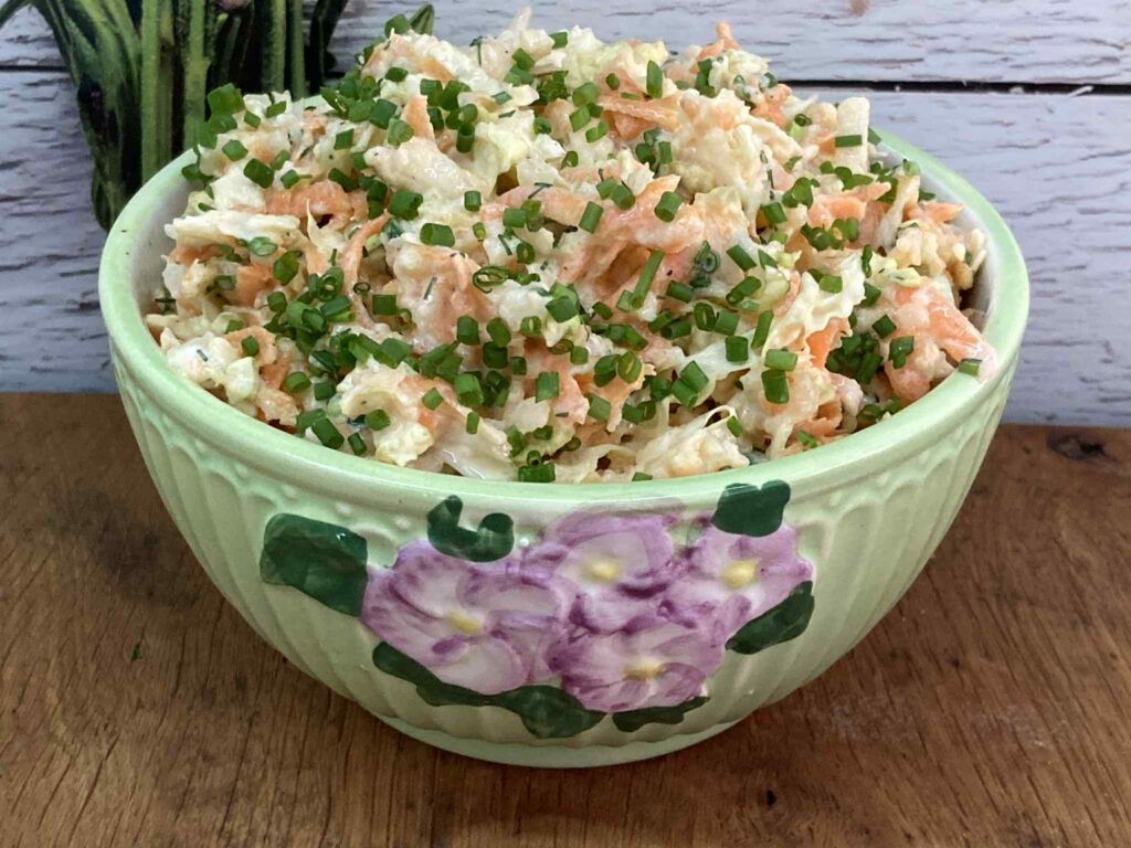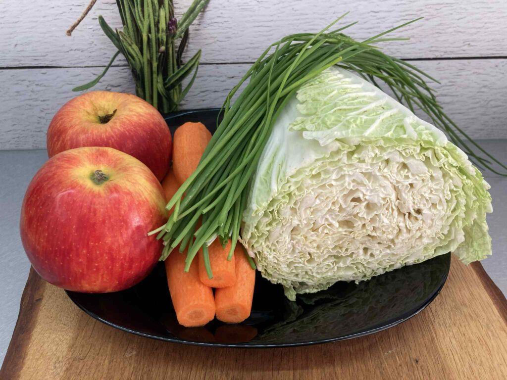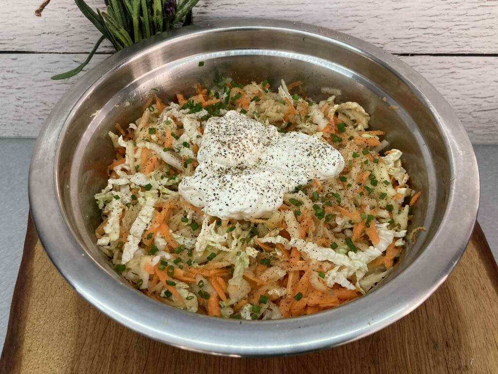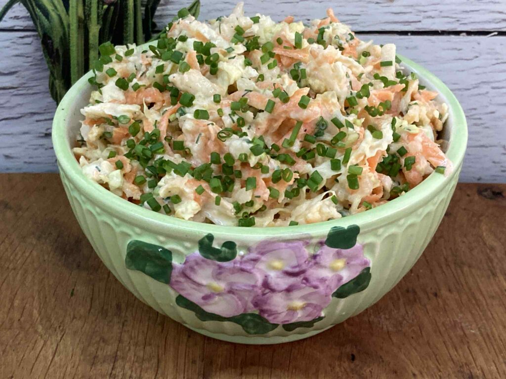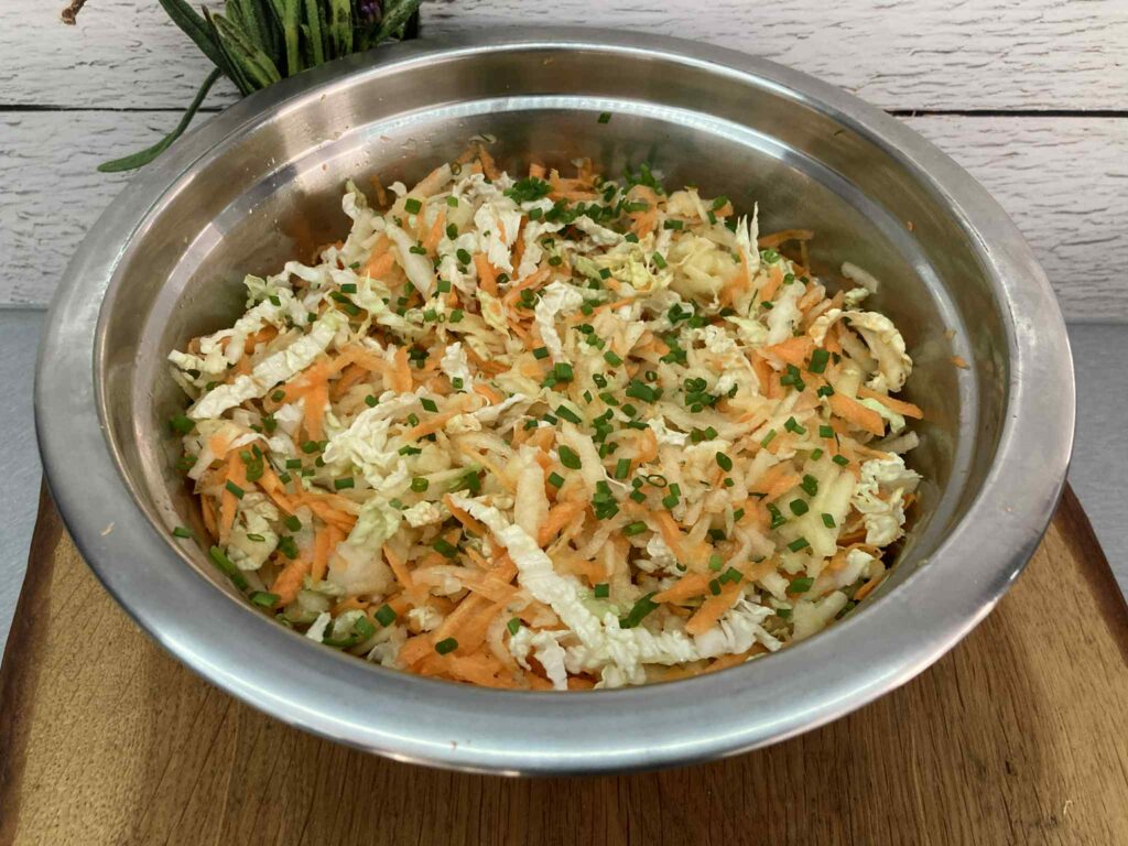 Surówka z kapusty pekińskiej z marchewką, jabłkiem i szczypiorkiem