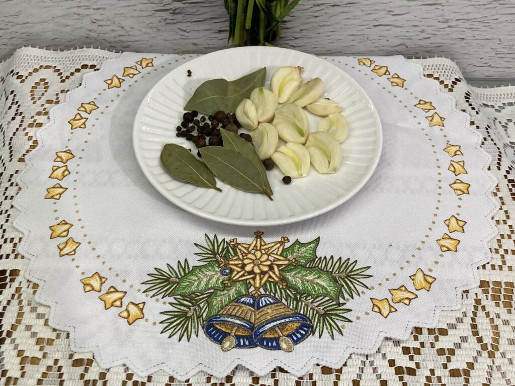 W dużym, czystym słoju lub kamionce ułóż warstwami buraki, czosnek i wszystkie przyprawy.