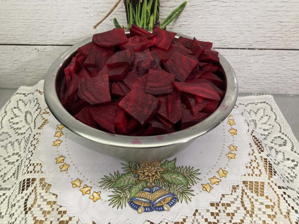 Buraki dokładnie umyj i obierz. Pokrój je w plastry lub większe kawałki.