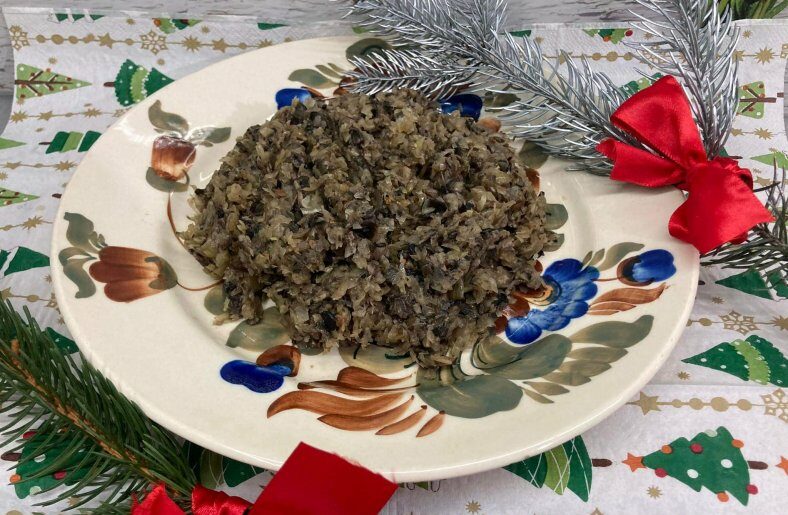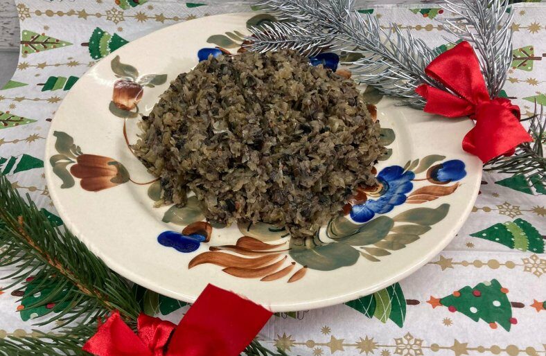 Klasyczny wigilijny farsz do pierogów z kapustą kiszoną i suszonymi borowikami to smak, który kojarzy się z ciepłem świątecznego stołu. Aromat grzybów, delikatnie podsmażona cebulka i miękka, dobrze odciśnięta kapusta tworzą połączenie, które zawsze się udaje. Farsz jest prosty, ale wyjątkowo pachnący i głęboki w smaku — idealny do tradycyjnych pierogów podawanych z masłem lub okrasą z cebulki. Najlepszy, gdy „przegryzie się” kilka godzin przed lepieniem.