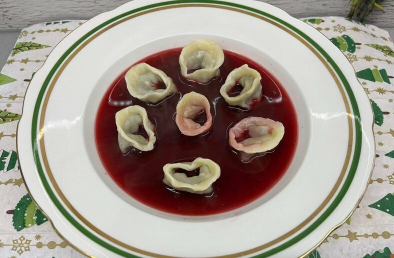 Barszcz podawaj gorący, uszka dodawaj bezpośrednio na talerz.