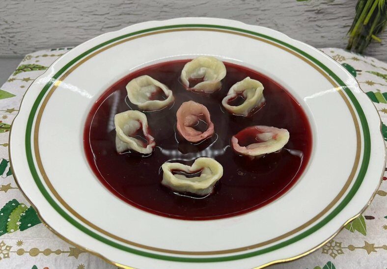 Barszcz podawaj gorący, uszka dodawaj bezpośrednio na talerz.