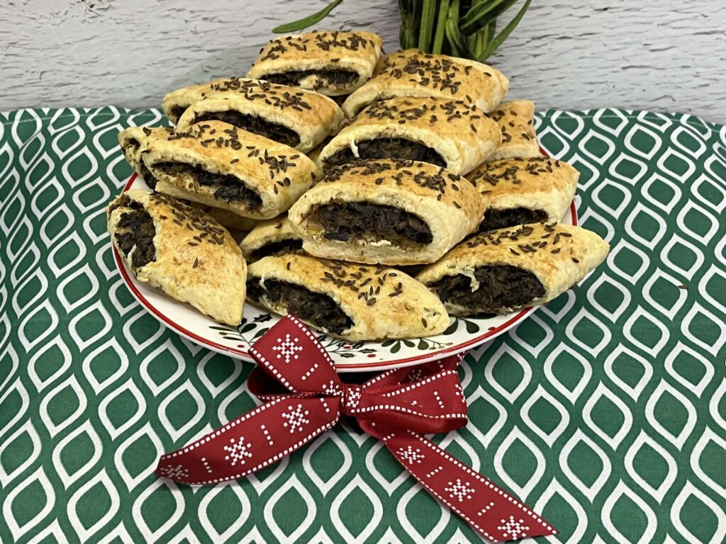 Paszteciki wigilijne to nieodłączny element świątecznej kolacji. Kruche, maślane ciasto w połączeniu z aromatycznym farszem z kapusty kiszonej i pieczarek tworzy idealny dodatek do gorącego barszczu czerwonego. Najlepiej smakują jeszcze lekko ciepłe, z chrupiącą skórką i intensywnym, wyrazistym wnętrzem.