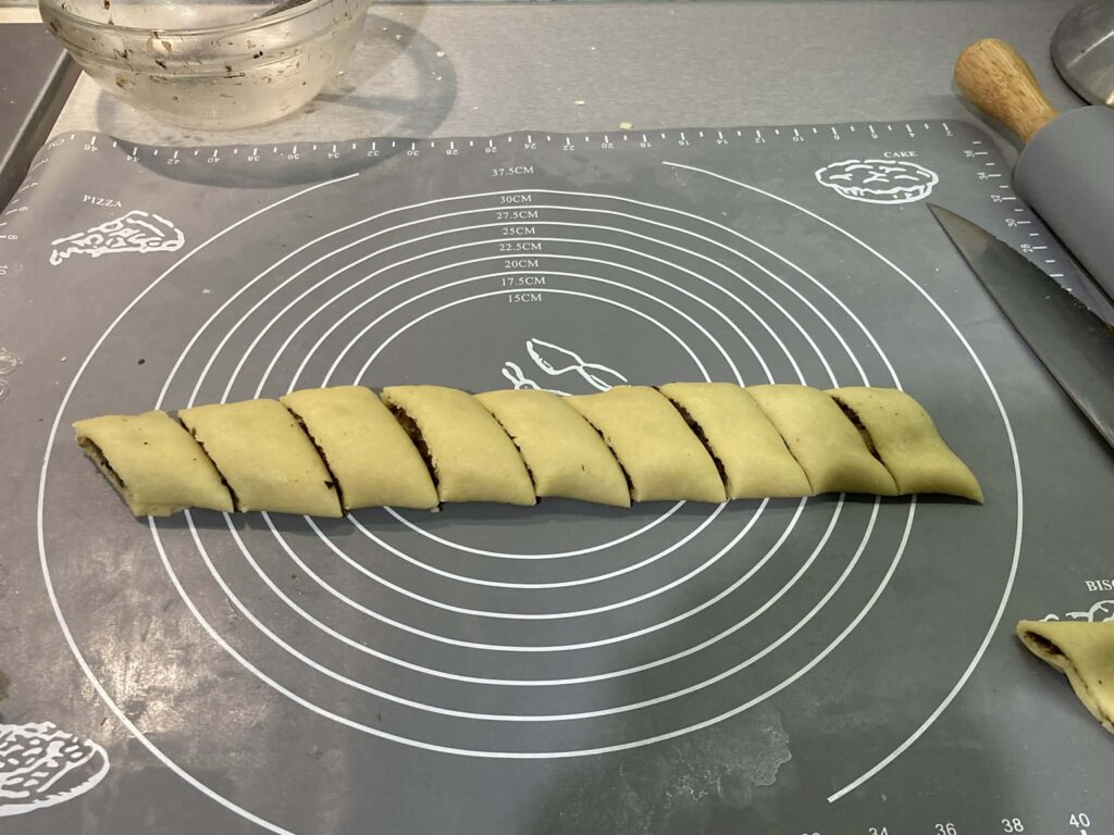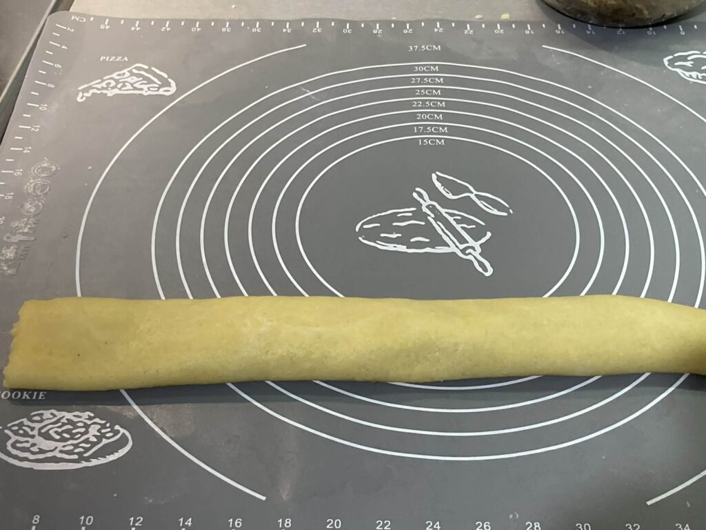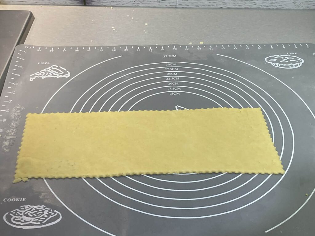 Schłodzone ciasto rozwałkuj na grubość ok. 3–4 mm.