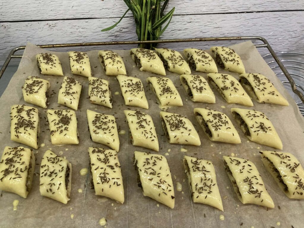Posmaruj roztrzepanym jajkiem i posyp kminkiem.