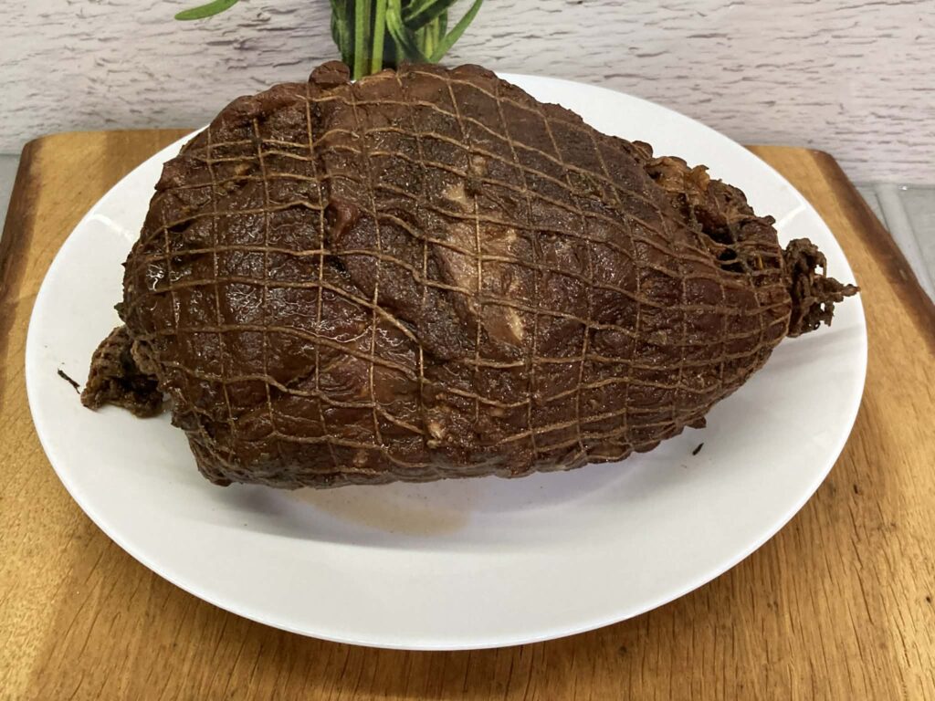 Następnego dnia opłucz szynkę i włóż ją do siatki wędliniarskiej.