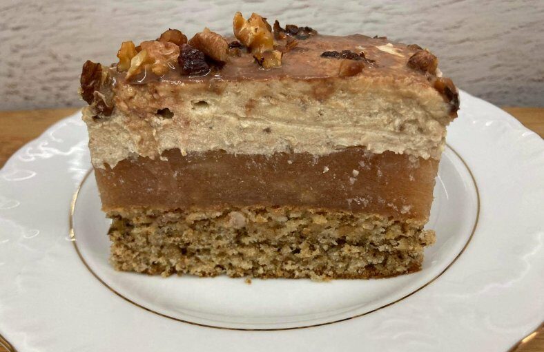 Ten jabłecznik to połączenie puszystego ciasta orzechowego, soczystej masy jabłkowej z galaretką, kremowej masy orzechowej oraz czekoladowej polewy z chrupiącymi orzechami. Ciasto jest sycące, pięknie się kroi i długo zachowuje świeżość. Idealne na weekend, święta albo rodzinne spotkanie.