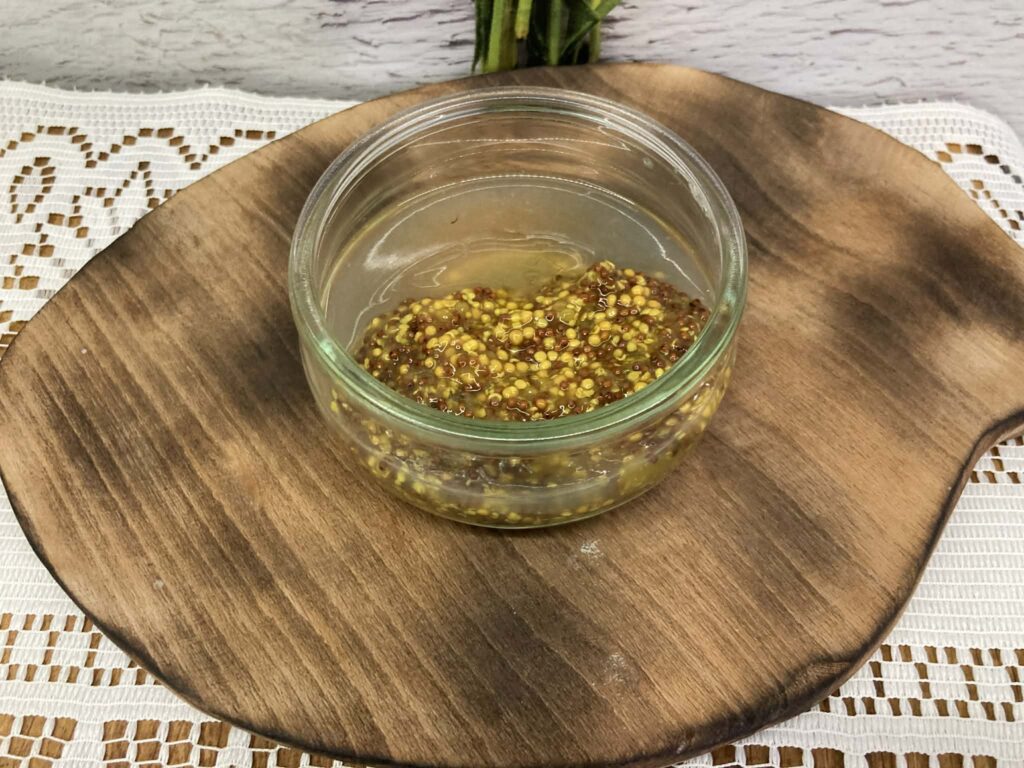 Dodaj musztardę francuską, miód oraz sok z cytryny.