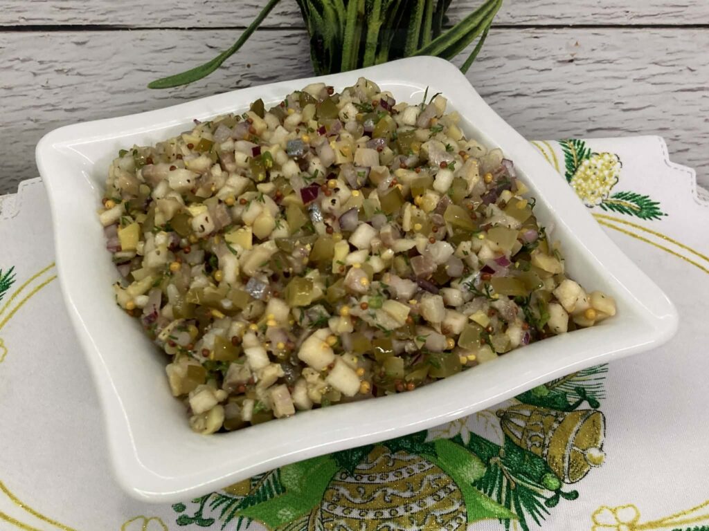 Jeśli śledzie są bardzo słone, możesz je wcześniej wymoczyć 30 minut w zimnej wodzie lub mleku.