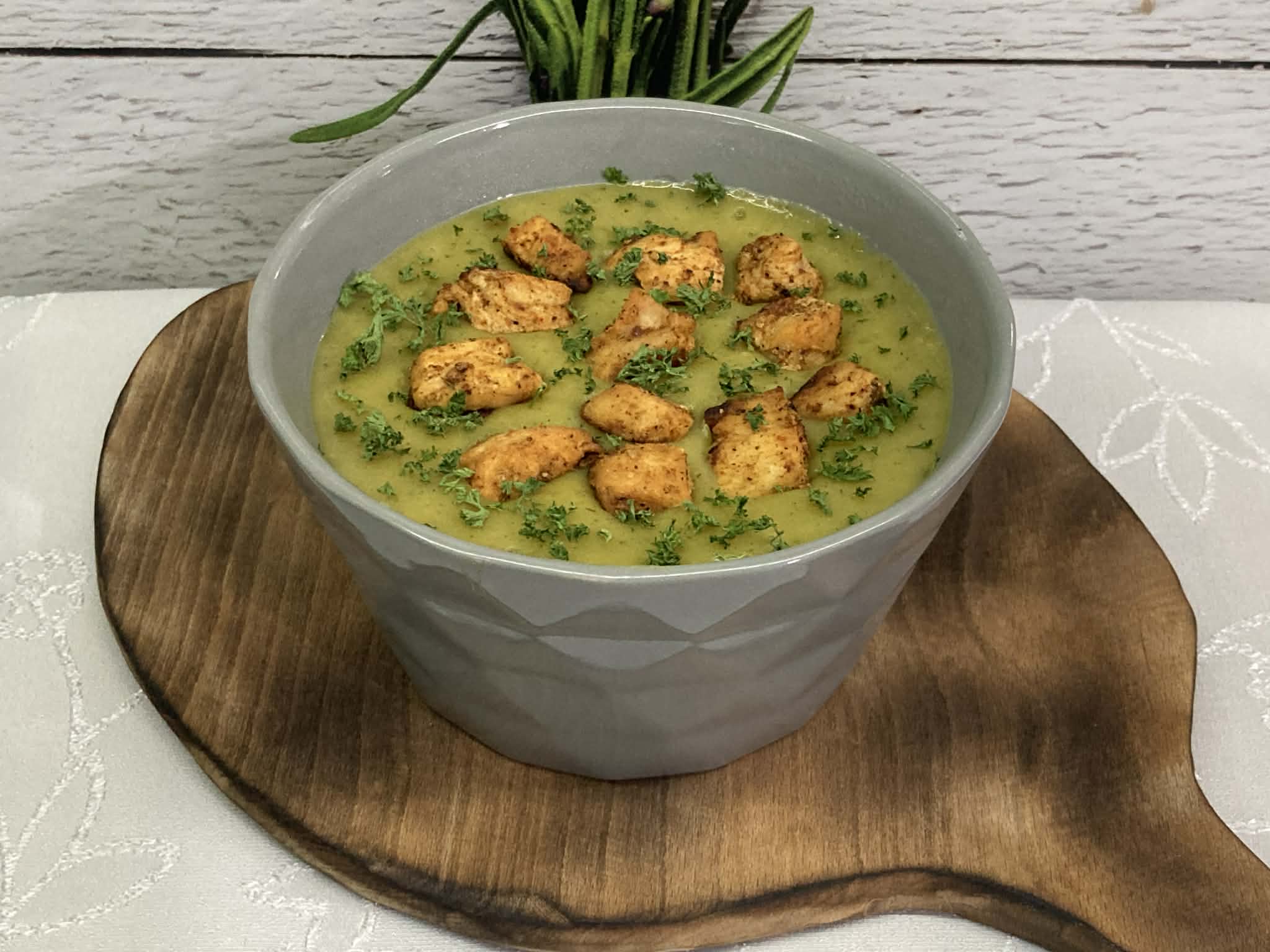 W małej miseczce wymieszaj mąkę ze śmietaną i kilkoma łyżkami gorącej zupy. Wlej do garnka, mieszając. Gotuj jeszcze 3–5 minut, aż zupa lekko zgęstnieje.