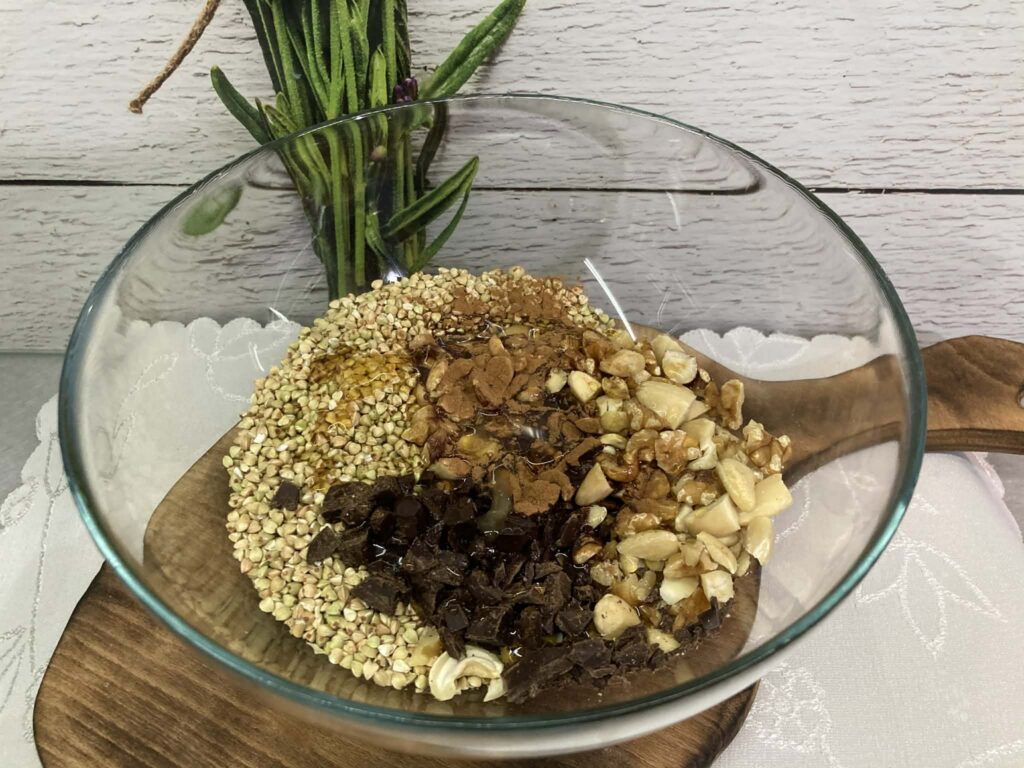To bardzo prosty i szybki przepis na zdrową, chrupiącą przekąskę lub dodatek do śniadania. Sprawdzi się jako domowa granola bez płatków – z kaszy gryczanej niepalonej, orzechów i gorzkiej czekolady. Bez miksera i bez skomplikowanych składników.