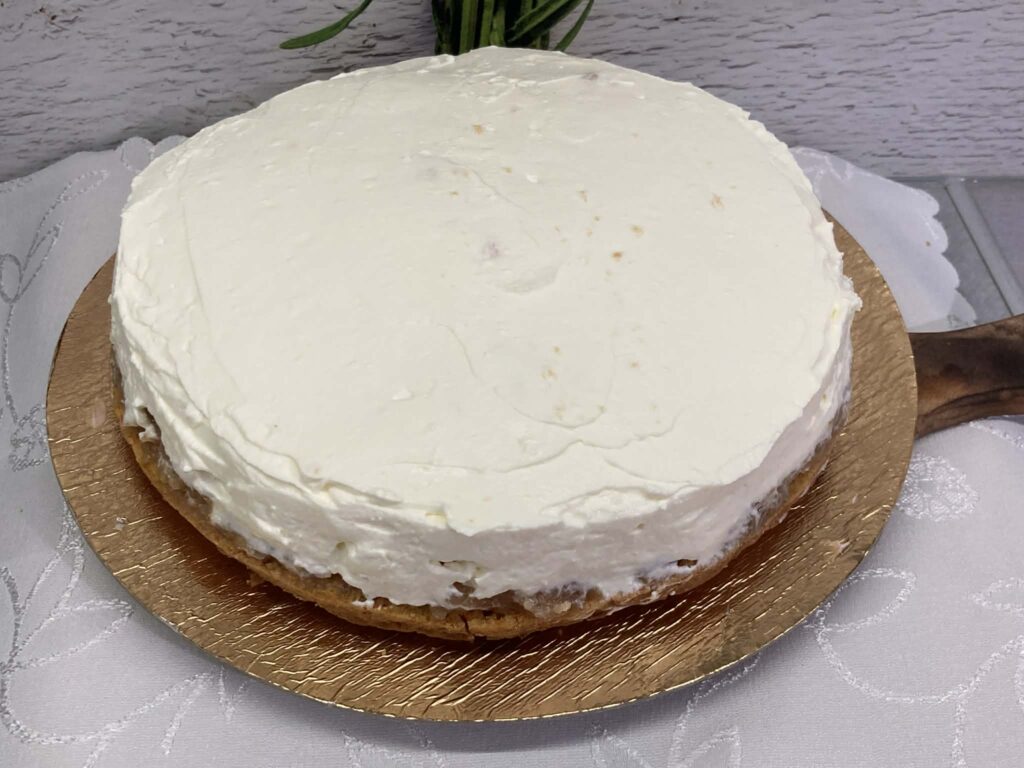 Boki oraz wierzch tortu posmaruj resztą masy śmietanowej.