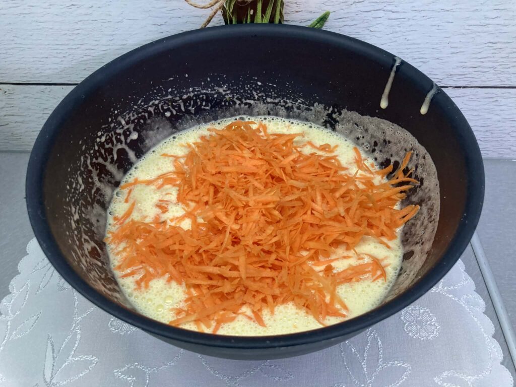 Dodaj startą marchewkę i krótko wymieszaj.