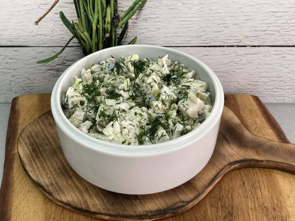 - Możesz dodać odrobinę jogurtu naturalnego zamiast części majonezu, jeśli chcesz lżejszą wersję.