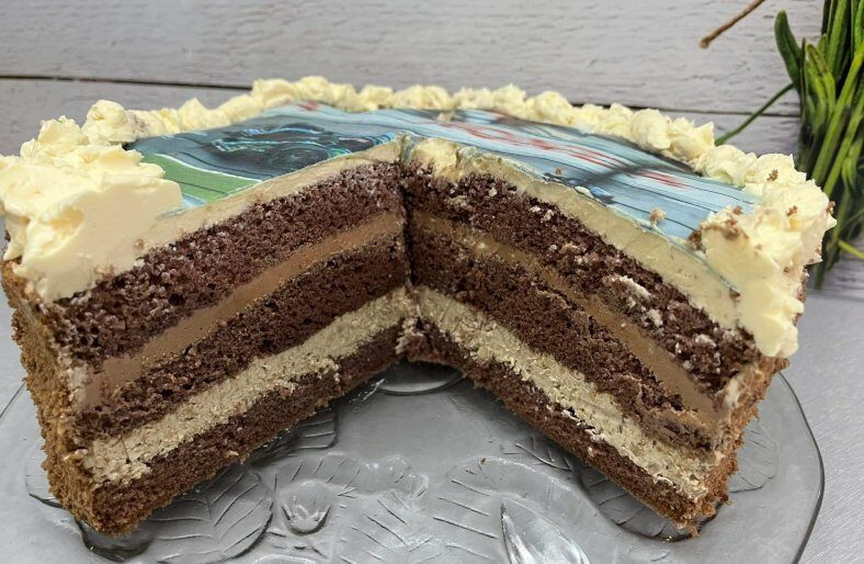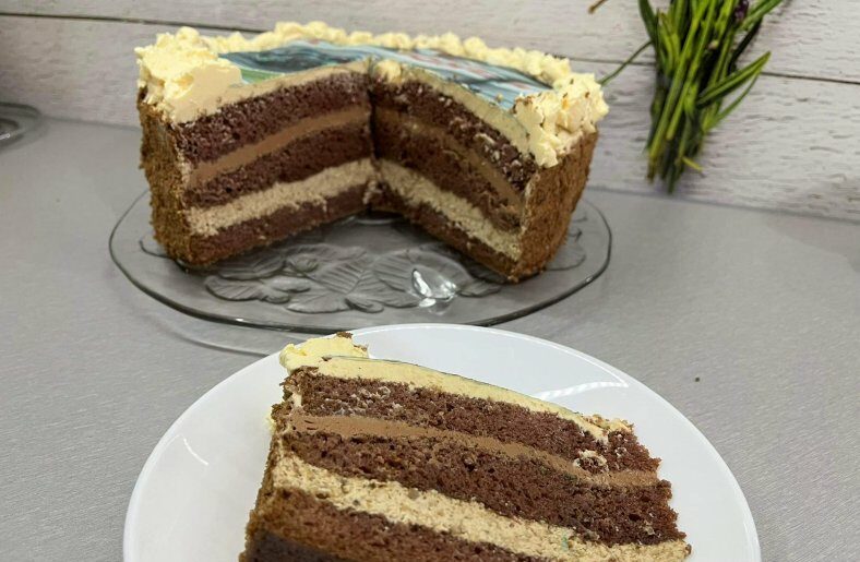 Ten tort to klasyka domowych uroczystości 🎂 Puszysty kakaowy biszkopt, delikatny krem maślano-jajeczny w trzech smakach i dekoracyjny opłatek na wierzchu. Tort pięknie się kroi, jest wilgotny i bardzo sycący – idealny na urodziny, imieniny albo większe rodzinne spotkanie.