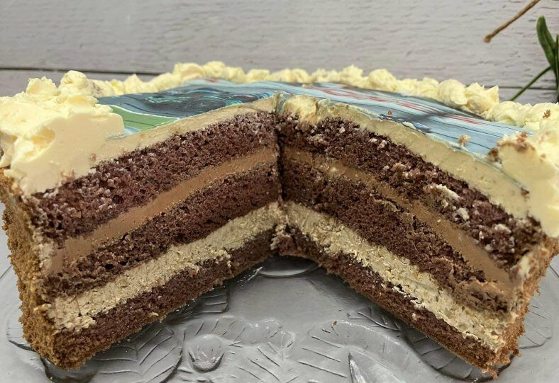 Ten tort to klasyka domowych uroczystości 🎂 Puszysty kakaowy biszkopt, delikatny krem maślano-jajeczny w trzech smakach i dekoracyjny opłatek na wierzchu. Tort pięknie się kroi, jest wilgotny i bardzo sycący – idealny na urodziny, imieniny albo większe rodzinne spotkanie.