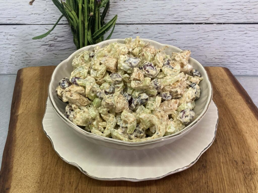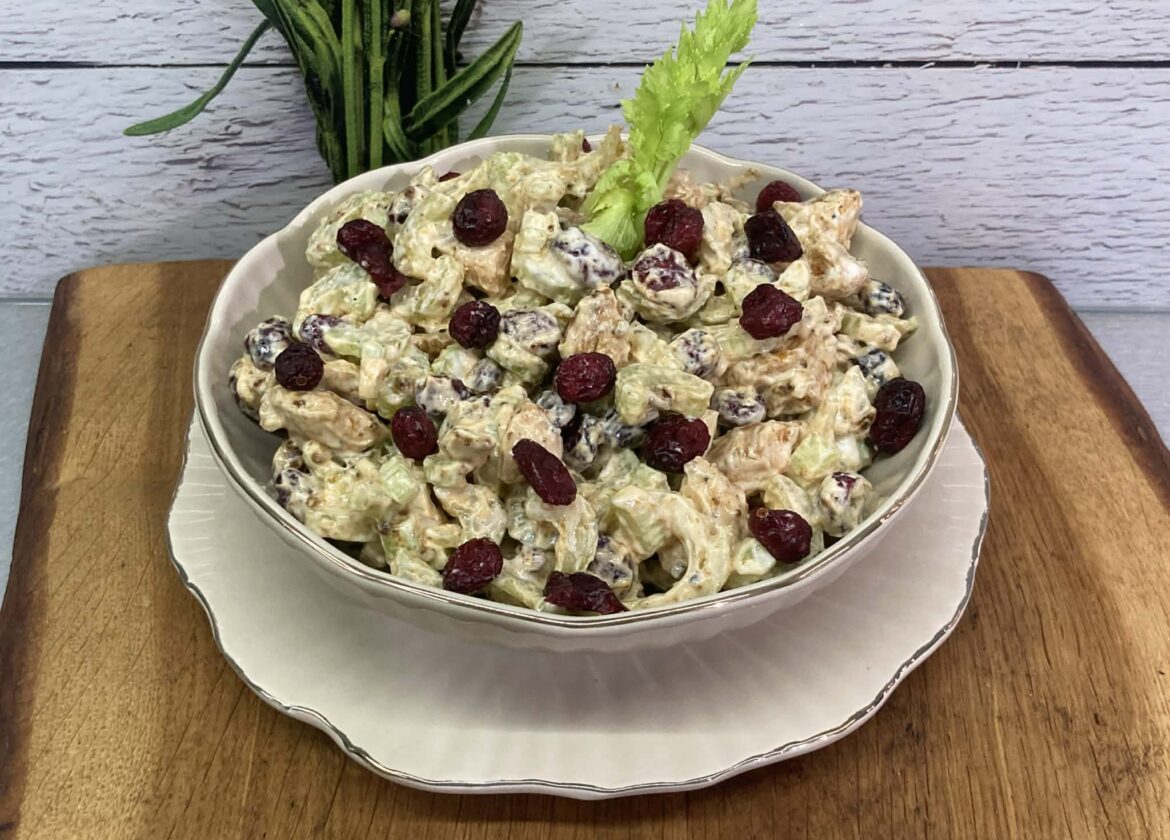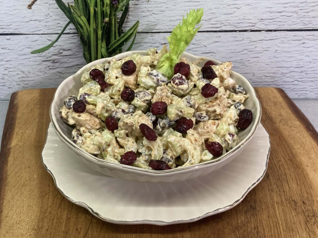 Ta sałatka to świetne połączenie delikatnego kurczaka, chrupiącego selera naciowego i lekko słodkiej żurawiny. Jest szybka w przygotowaniu, sycąca, a jednocześnie bardzo świeża w smaku. Idealnie sprawdzi się na kolację, do pracy albo jako sałatka na spotkanie z rodziną. Sos jogurtowo-majonezowy jest kremowy, ale nie za ciężki – dokładnie taki, jak trzeba.