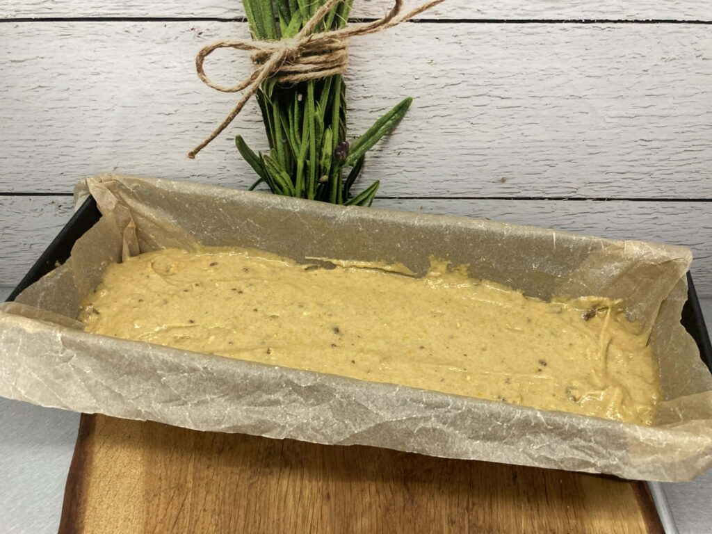Gotowe ciasto przełóż do przygotowanej keksówki i wyrównaj wierzch.