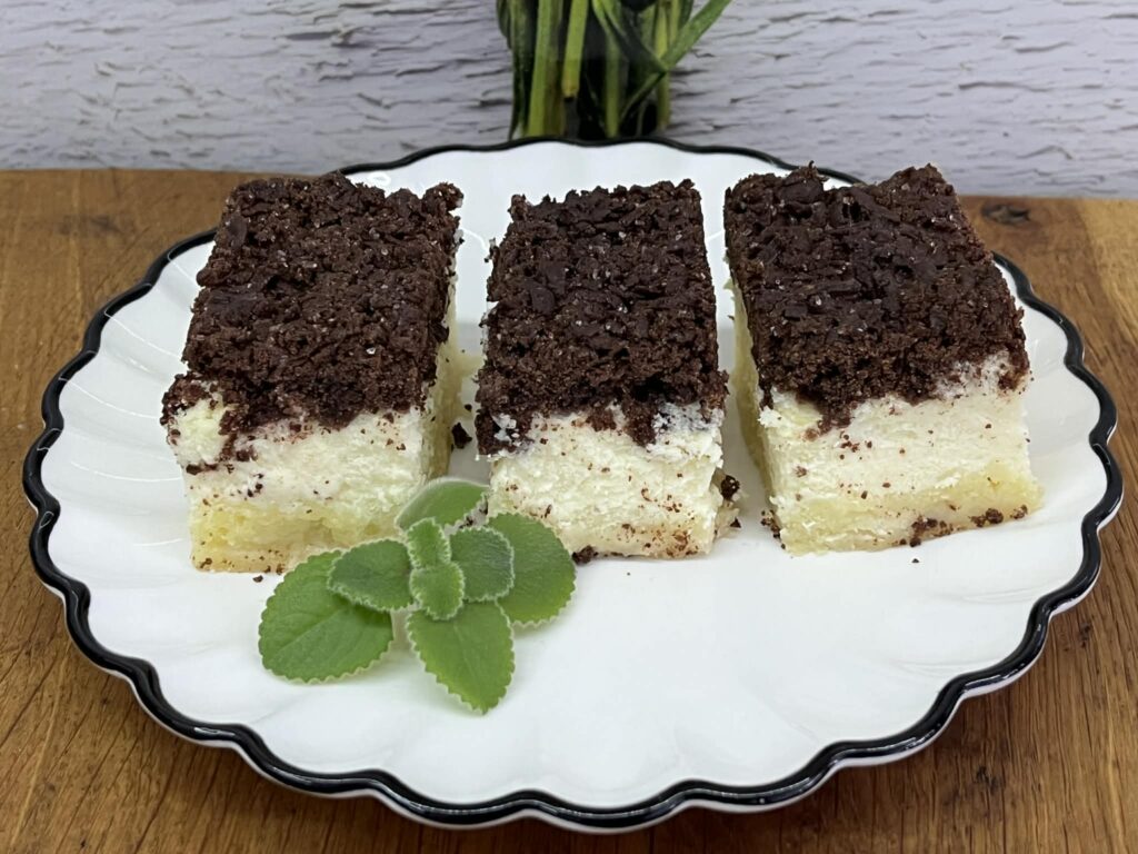 Sernik kapłański to wyjątkowo efektowne i bardzo aromatyczne ciasto. Jego charakterystyczną cechą są dwie warstwy kruchego ciasta ścierane na tarce – jasna na spodzie i kakaowa na wierzchu. Pomiędzy nimi znajduje się delikatna, puszysta masa serowa o subtelnym waniliowo-pomarańczowym aromacie. Dzięki mrożeniu i ścieraniu ciasta powstaje piękna, lekko chrupiąca struktura, a sernik po upieczeniu jest kremowy i wilgotny.