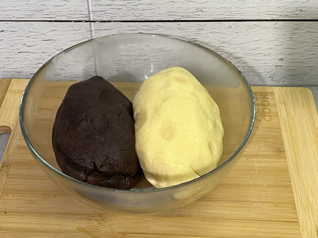 - do jednej dodaj kakao i ponownie zagnieć,