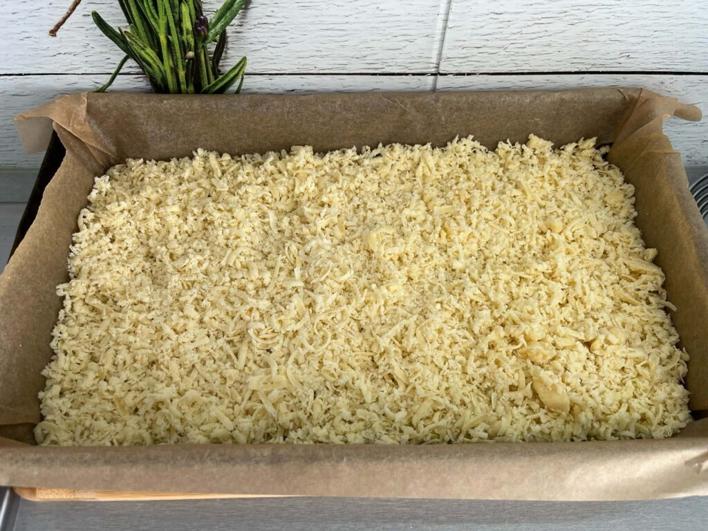 ✔ Ciasto musi być dobrze zamrożone – wtedy łatwo się ściera i tworzy równą warstwę.