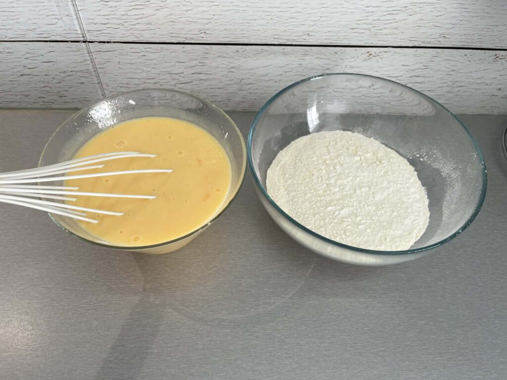 W misce wymieszaj jajka z cukrem i cukrem wanilinowym (możesz lekko ubić trzepaczką).