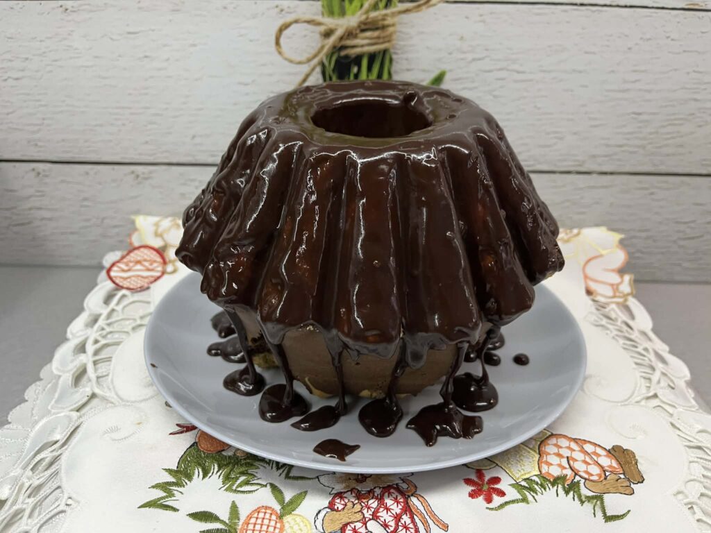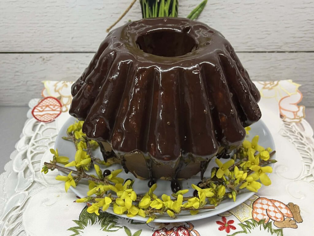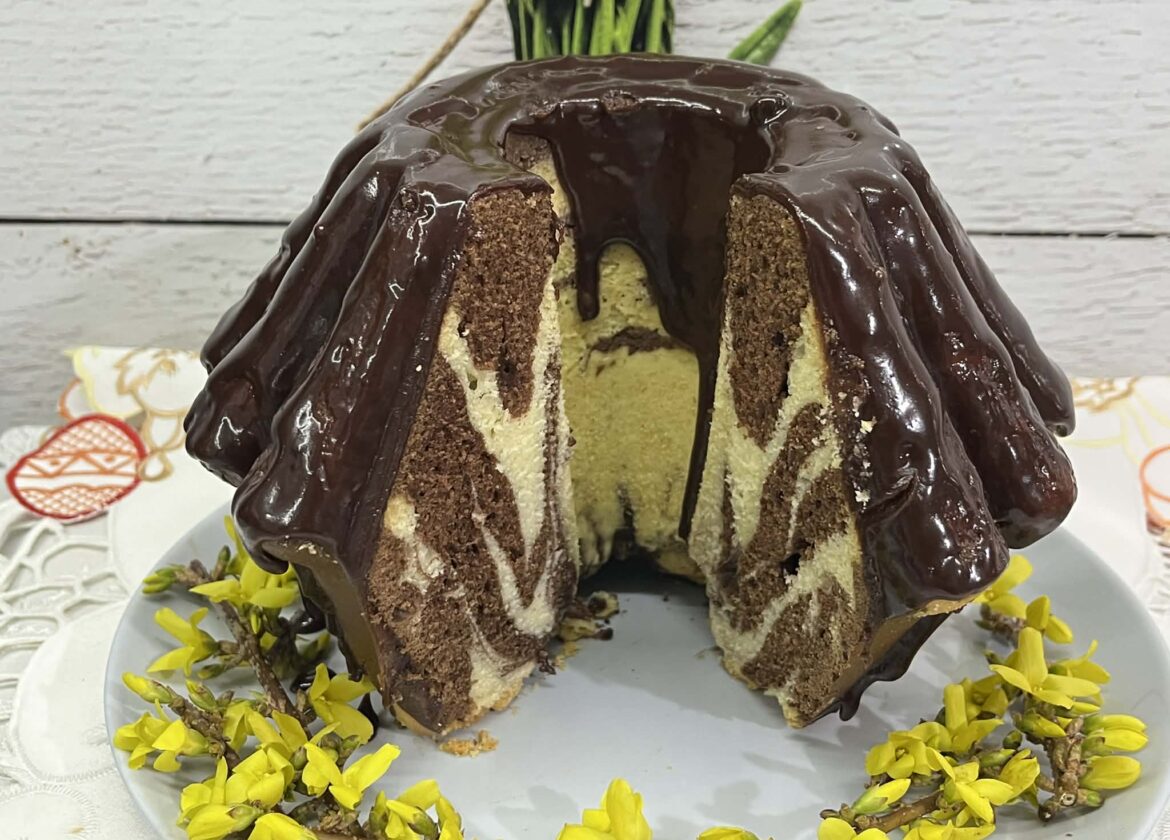Babka marmurkowa w polewie czekoladowej to klasyczne, domowe ciasto, które zachwyca nie tylko smakiem, ale i wyglądem. Jest miękka, wilgotna i delikatna dzięki dodatkowi oleju, a jej wnętrze kryje charakterystyczny, efektowny wzór powstały z połączenia jasnego i kakaowego ciasta. Każdy kawałek jest nieco inny, co dodaje jej uroku. Smak jest idealnie wyważony – słodki, z subtelną nutą wanilii i lekką czekoladową goryczką z kakao. Całość doskonale uzupełnia aksamitna polewa z deserowej czekolady, która nadaje babce elegancji i sprawia, że staje się jeszcze bardziej kusząca. To ciasto świetnie sprawdza się zarówno na co dzień do kawy czy herbaty, jak i na rodzinne spotkania czy święta. Jest proste w przygotowaniu, a jednocześnie wygląda bardzo efektownie – idealne, gdy chcesz upiec coś sprawdzonego, ale robiącego wrażenie.