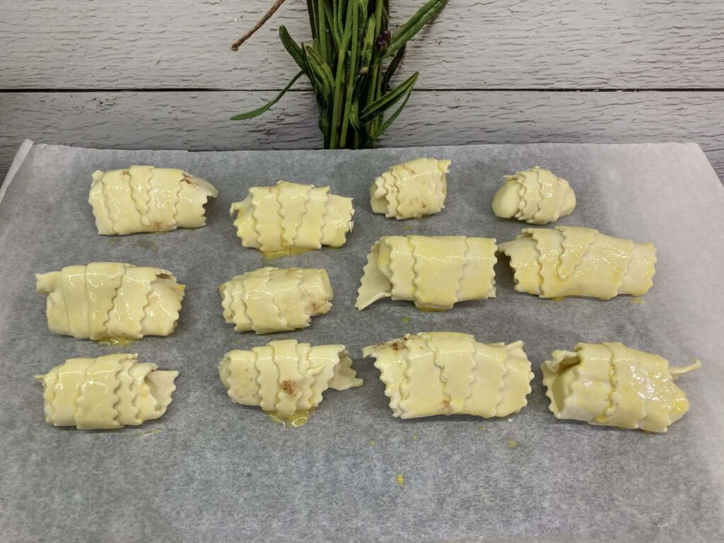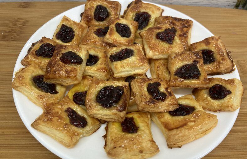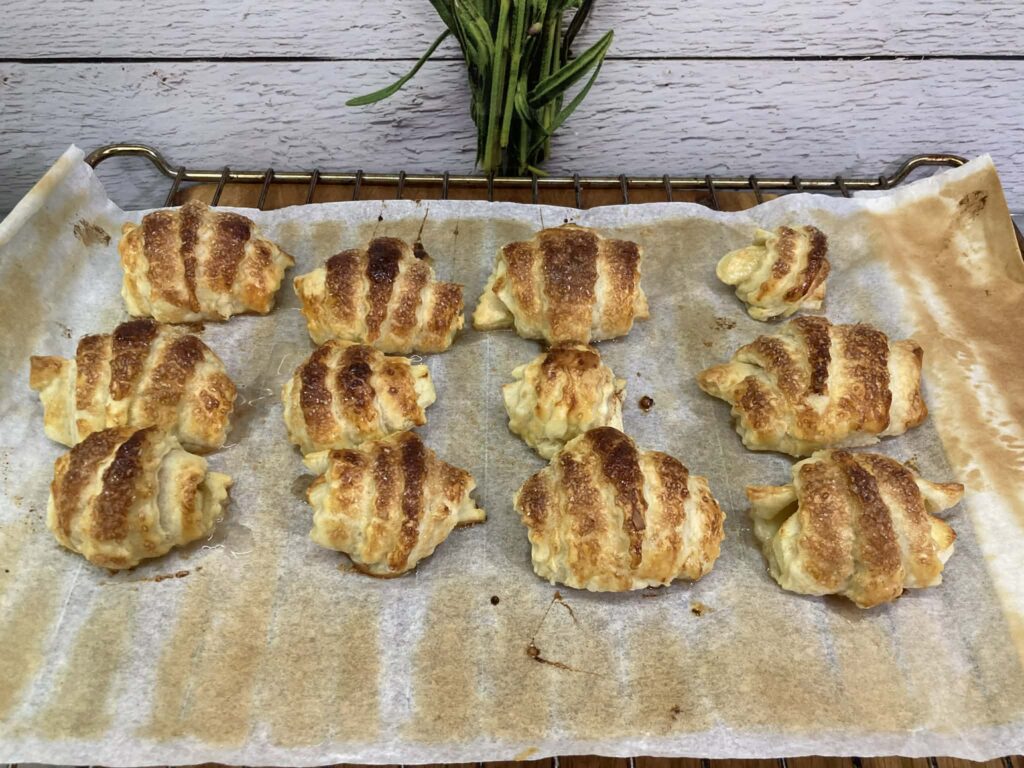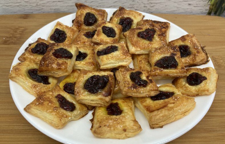 Ciasto francuskie musi być dobrze schłodzone przed pieczeniem – wtedy ładnie się rozwarstwi.