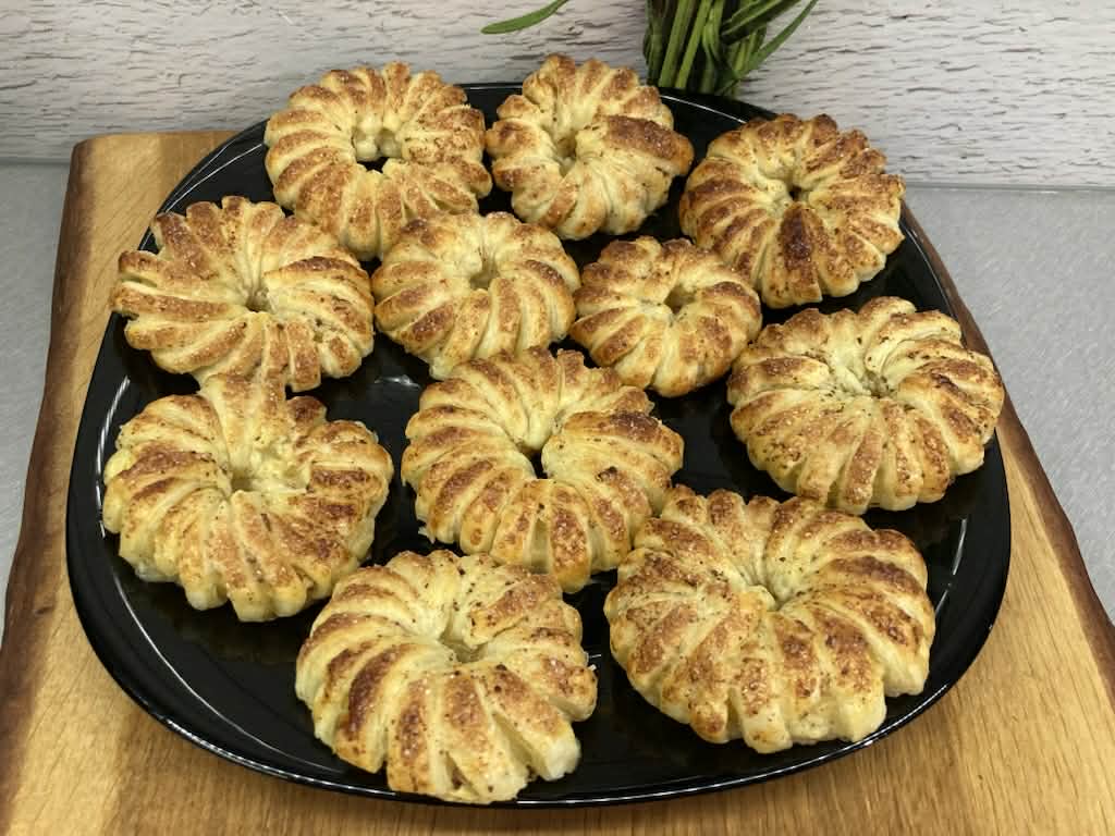 Ciasto francuskie rozwiń za pomocą literatki wytnij kółka.