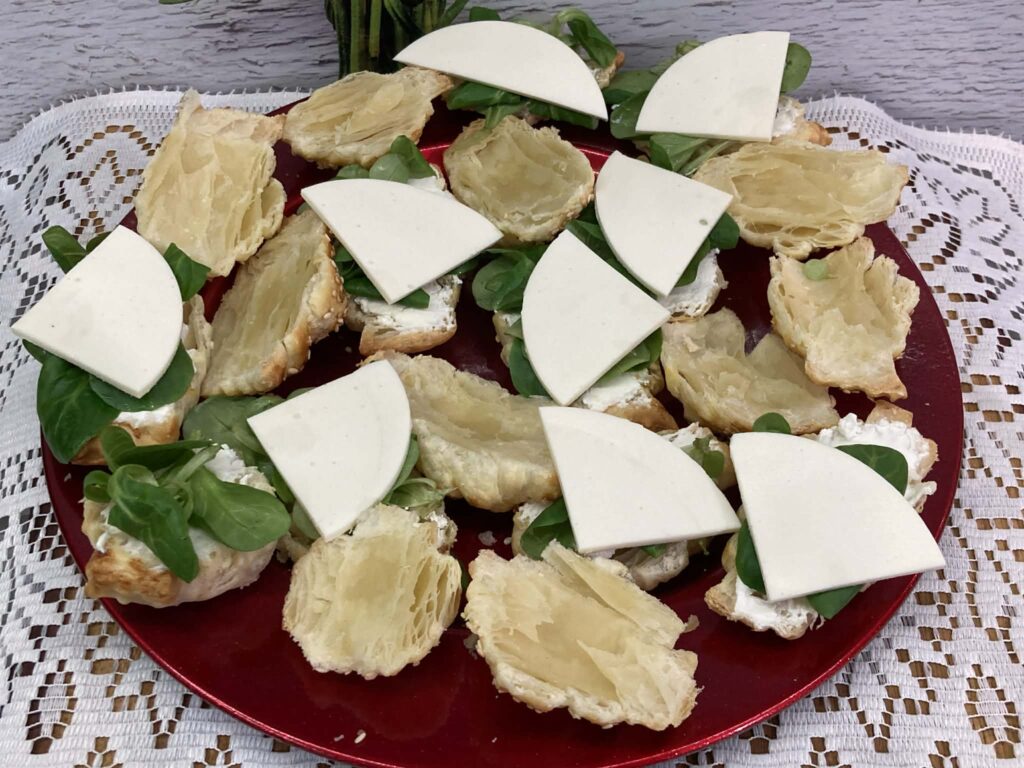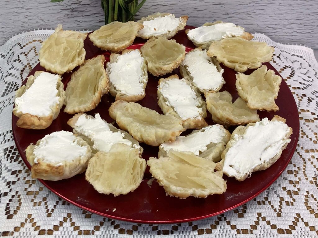 Spody z ciasta francuskiego można przygotować kilka godzin wcześniej, a kanapeczki złożyć tuż przed podaniem.